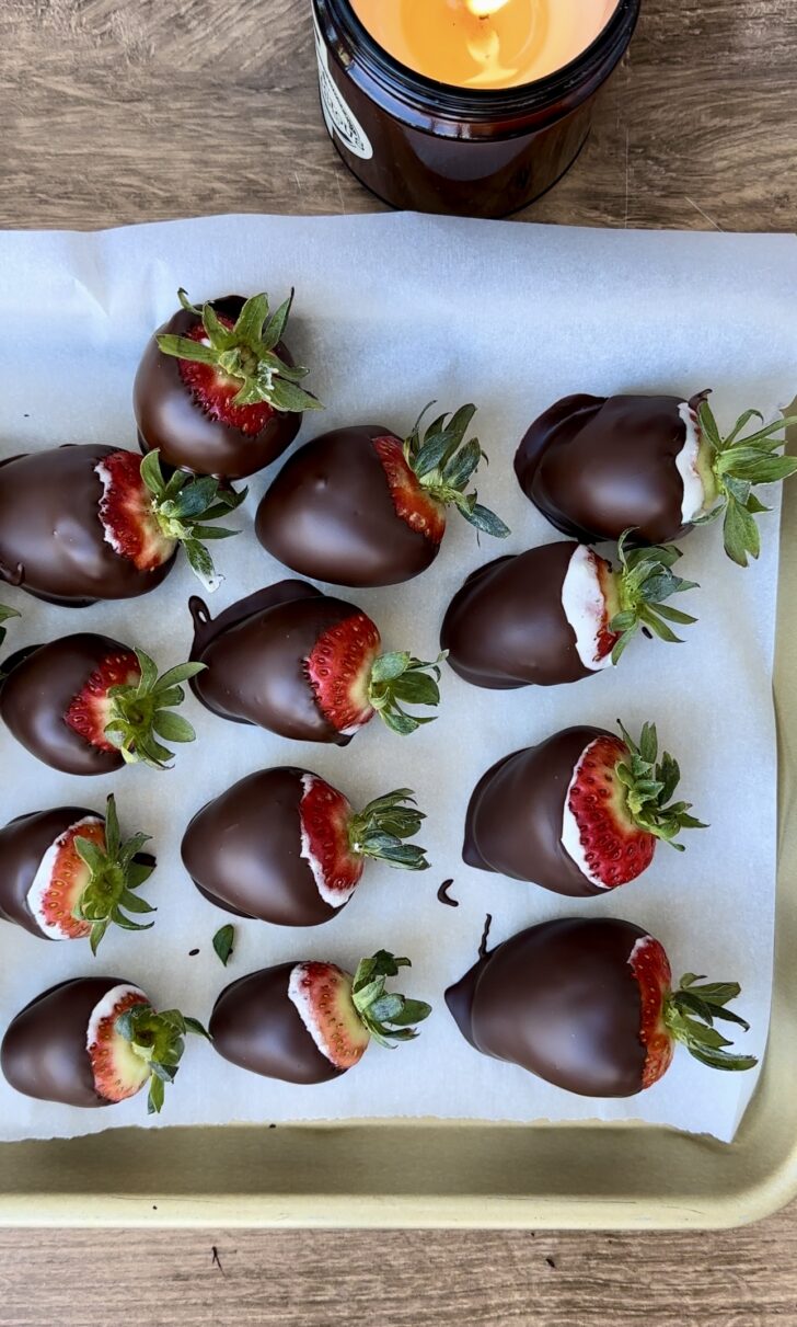- Return strawberries to parchment paper and chill until chocolate sets.